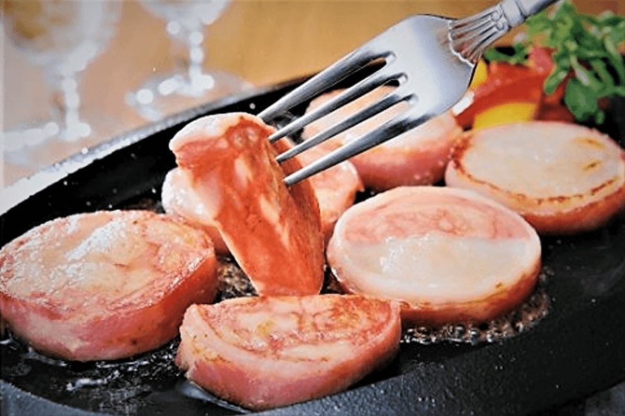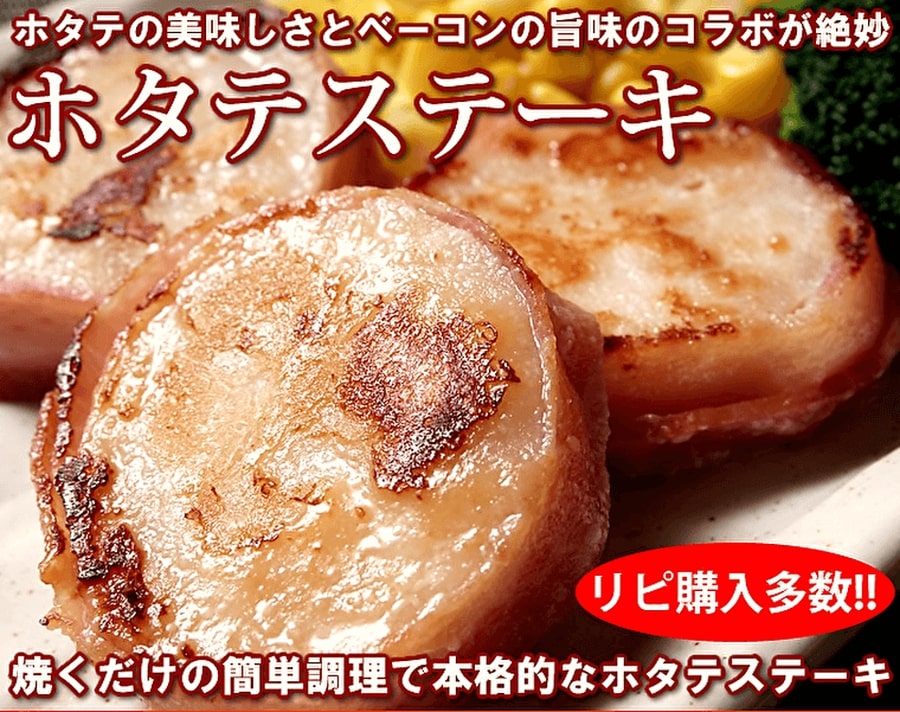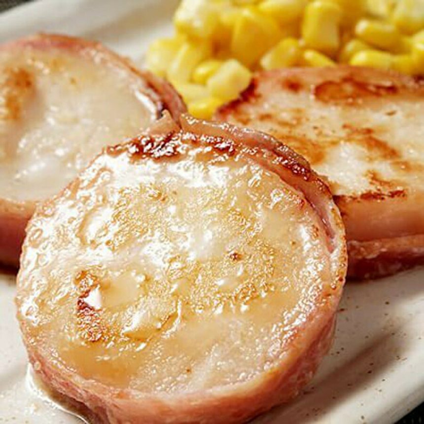 稚内(宗谷)産のフライパンで焼くだけの簡単調理で、本格的な海鮮ステーキをお楽しみいただけます。新鮮な鮭の身を粗ほぐしにして、デンマーク産の特製ベーコンで巻き込んでギュッと美味しさを凝縮させた海鮮ステーキです。